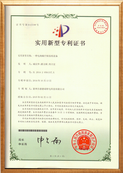Certificate of utility model